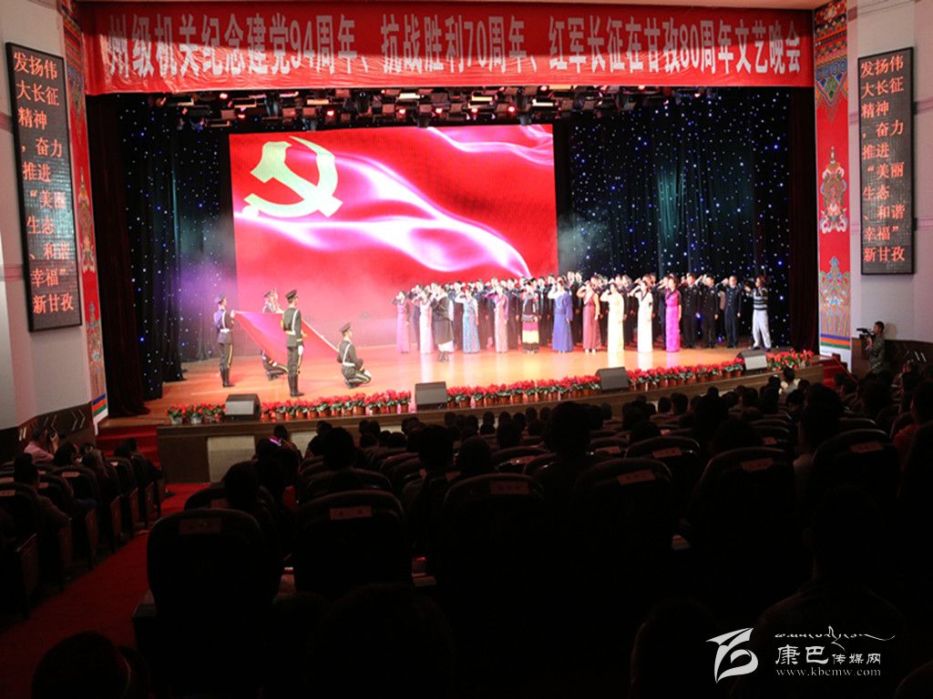 本網(wǎng)訊(記者 宋志勇 文/圖)6月30日晚,由州直屬機關(guān)工委和州民族干部學(xué)校聯(lián)合主辦的州級機關(guān)紀念建黨94周年、抗戰(zhàn)勝利70周年、紅軍長征在甘孜80周年文藝晚會在康定劇場演出。州領(lǐng)導(dǎo)李康、相洛、白蘇英、何飚、周冬秀、蔣秀英、孫飛以及甘孜軍分區(qū)領(lǐng)導(dǎo)等觀看了演出。